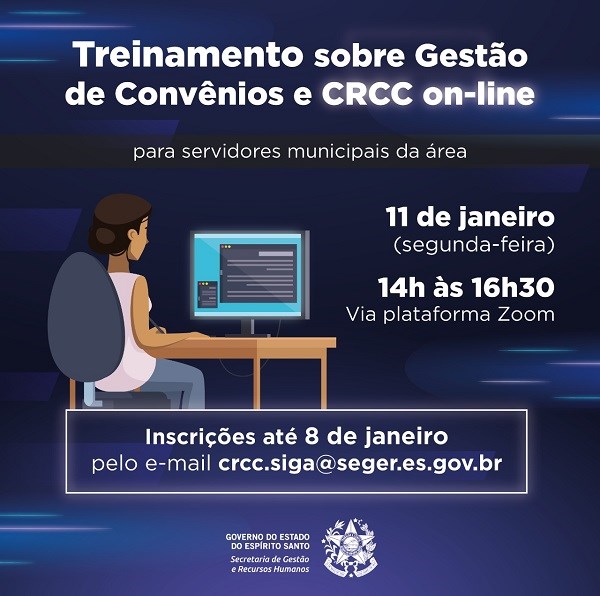 A capacitação abordará a legislação aplicável e os procedimentos atuais relacionados aos convênios, além do passo a passo para efetuar o cadastro de novos usuários no Módulo de Convênios do Sistema Integrado de Gestão Administrativa (SIGA) e de orientações sobre o Certificado de Registro Cadastral de Convenentes (CRCC) on-line.