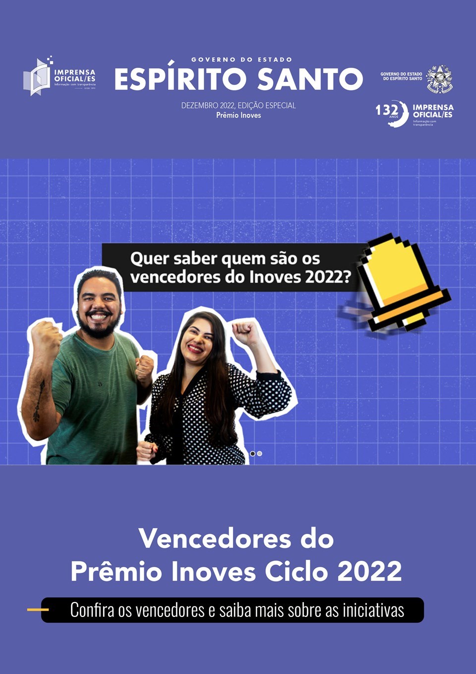 O Inoves 2022 ganhou uma edição especial produzida pelo Diário Oficial do Estado. A Gerência de Comunicação (GC) da Imprensa Oficial do Espírito Santo (DIO/ES), em parceria com a Secretaria de Gestão e Recursos Humanos (Seger) e os órgãos vencedores, produziu o caderno com informações detalhadas dos projetos campeões deste ano.