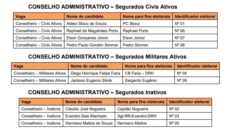 • Aposentados: 2 titulares + 2 suplentes