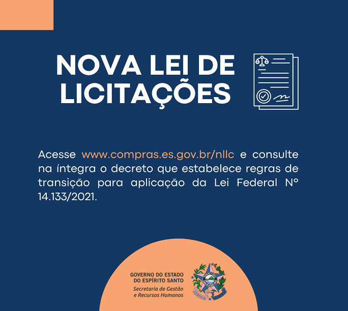 O Governo do Estado publicou, no Diário Oficial do Espírito Santo desta quarta-feira (29), o Decreto Nº 5353-R que estabelece regras de transição para aplicação da Lei Federal Nº 14.133, de 1º de abril de 2021 – também conhecida como Nova Lei de Licitações.