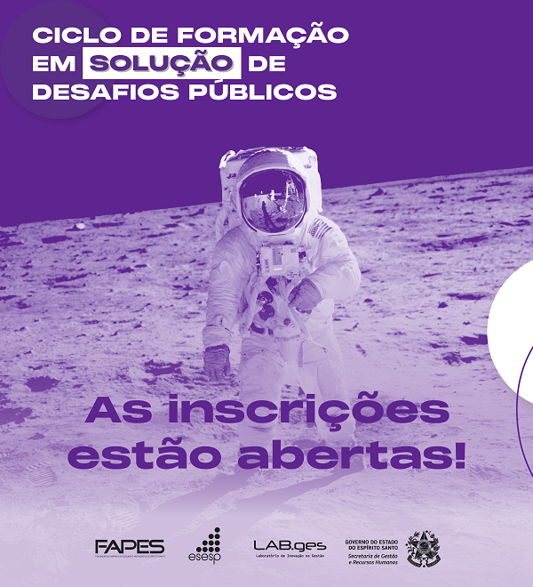 O Laboratório de Inovação da Secretaria de Gestão e Recursos Humanos (LAB.ges/Seger) abriu, nesta quarta-feira (24), as inscrições para o Ciclo de Formação em Solução de Desafios Públicos. Os interessados em participar da capacitação devem se cadastrar, até o próximo dia 12 de junho, pelo site www.labges.es.gov.br/cicloformacaosolucao.
