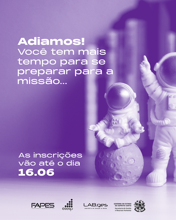 O Laboratório de Inovação da Secretaria de Gestão e Recursos Humanos (LAB.ges/Seger) prorrogou, para o próximo dia 16 de junho, o prazo de inscrições no Ciclo de Formação em Solução de Desafios Públicos. O cadastro é efetuado exclusivamente pelo site www.labges.es.gov.br/cicloformacaosolucao.