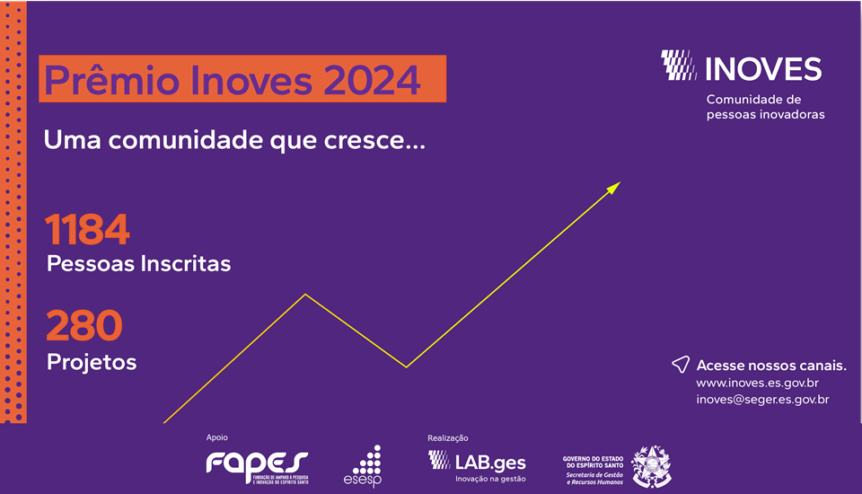 A edição de 2024 do Prêmio Inoves bateu recorde no número de inscritos e projetos, alcançando a marca de 1.184 pessoas participantes em 280 iniciativas inscritas. A contagem supera a edição anterior, que teve 1.027 inscritos e 251 projetos a serem avaliados.