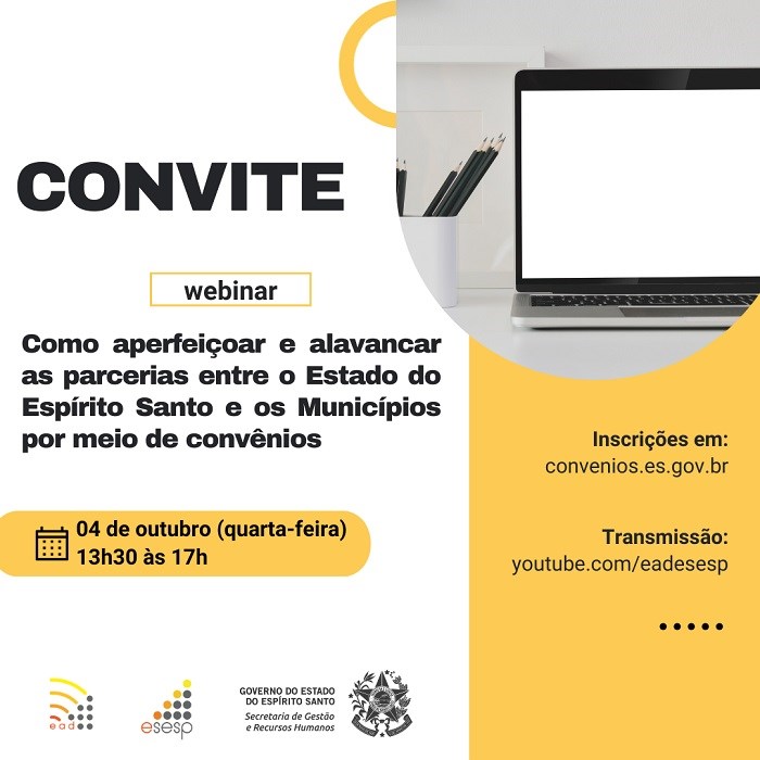 Os servidores interessados deverão se inscrever no webinar por meio do formulário digital disponível no portal www.convenios.es.gov.br.