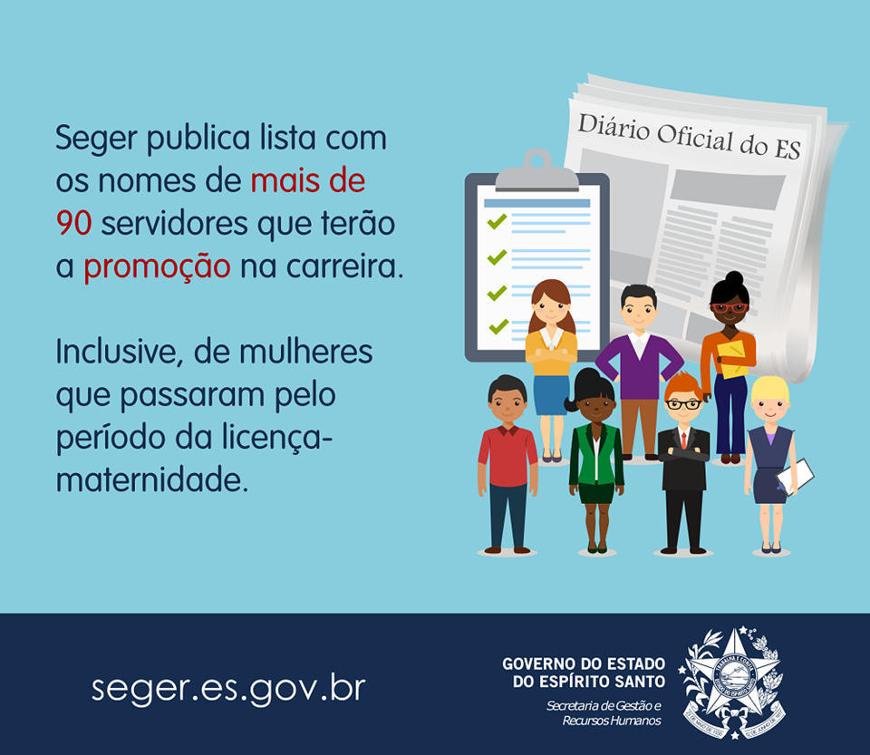 A lista de promoção por seleção, publicada nesta segunda-feira (17), inclui os nomes de servidoras que passaram pelo período de licença-maternidade. Isso só foi possível graças à Lei Complementar Nº 9/2017, sancionada pelo governador Paulo Hartung, em maio deste ano.